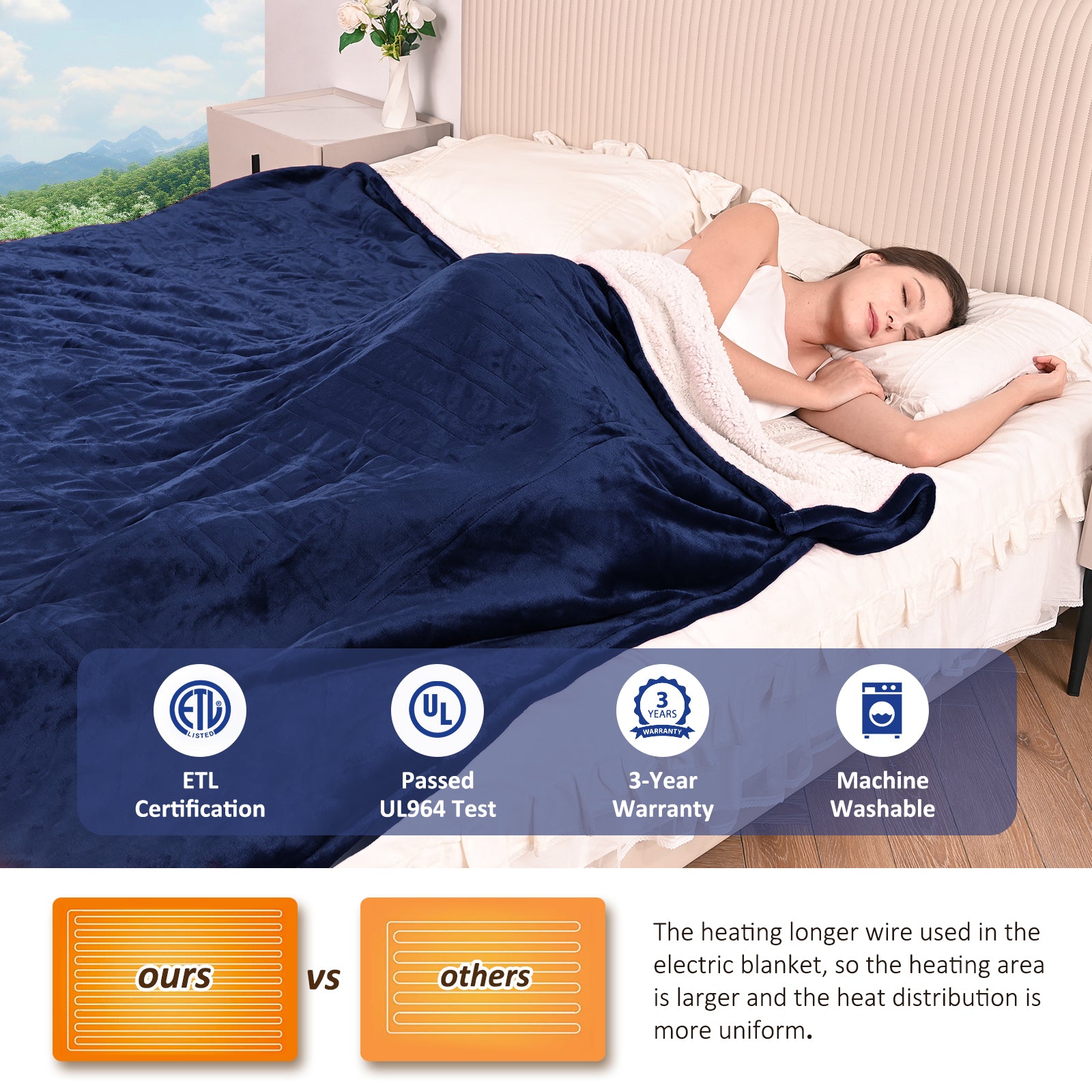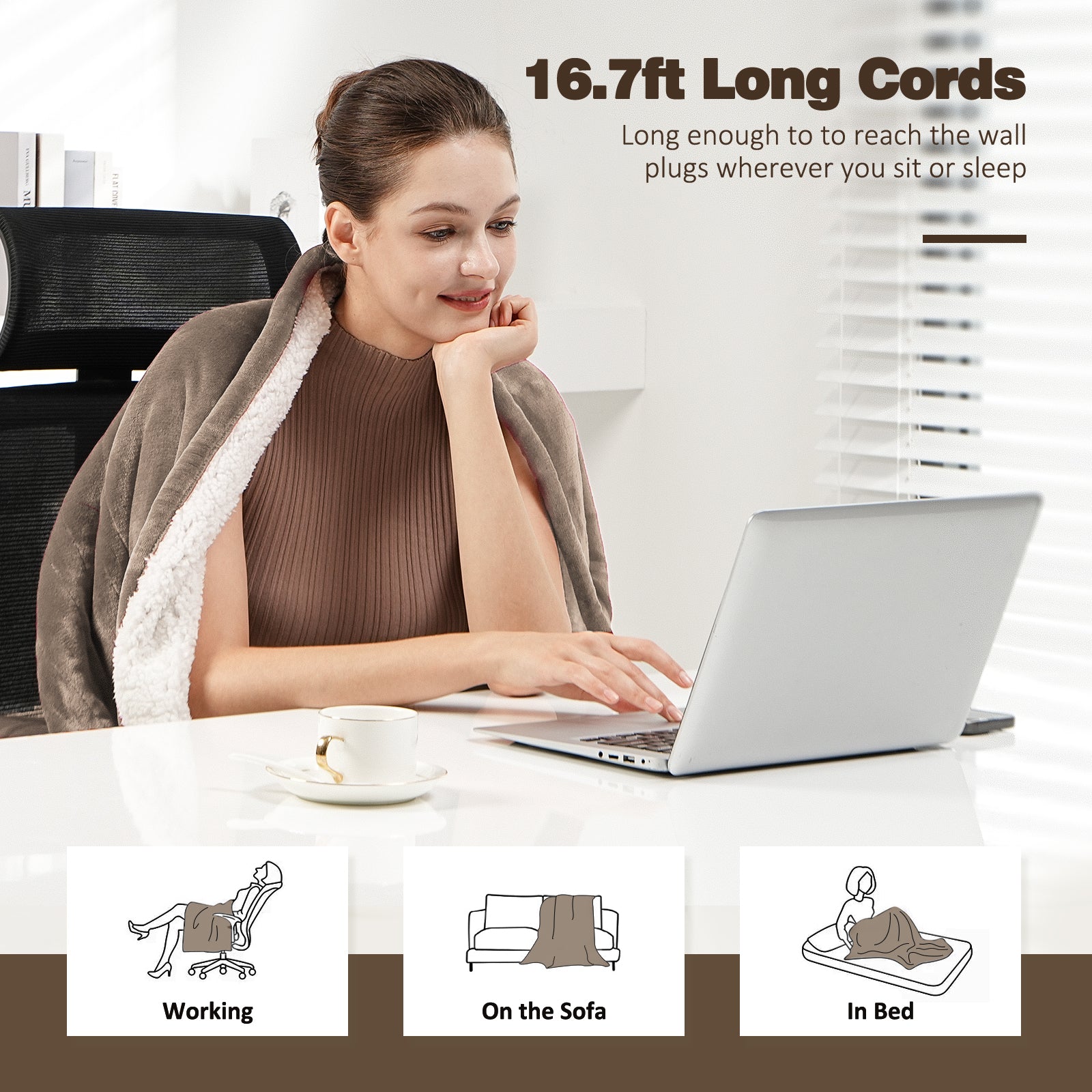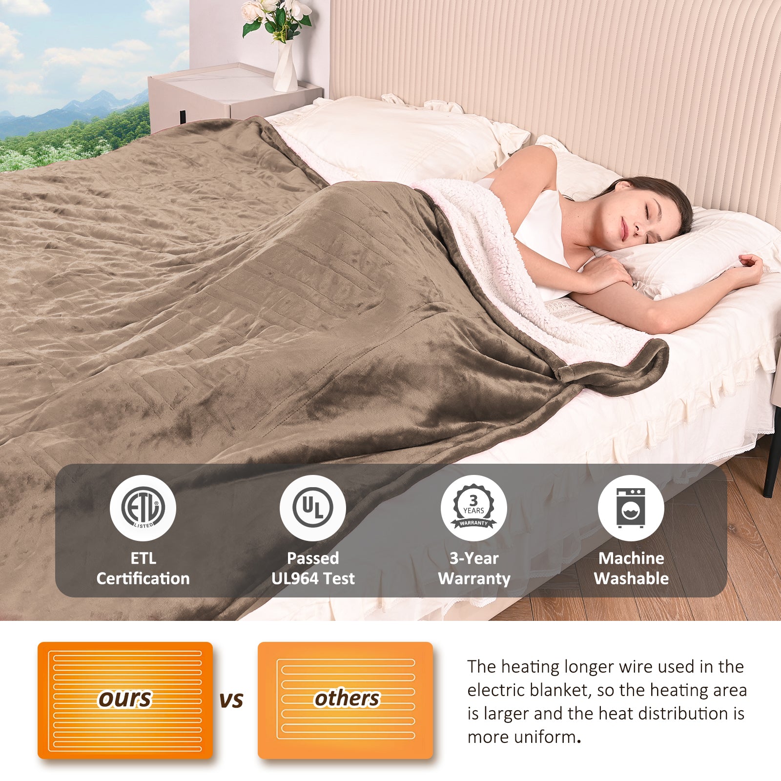 **Experience Unmatched Warmth**:Immerse yourself in the luxurious comfort of our Fluffy Heated Lounge Blanket, meticulously crafted from a fusion of premium 200gsm flannel and 180gsm sherpa fabric. This dynamic duo offers not only exceptional heat permeability but also unparalleled heat retention. With a texture as inviting as a warm embrace, this blanket becomes your ultimate cocoon of comfort. Measuring a generous 62"x84", it ensures you're enveloped in cozy warmth that shields you from even the coldest of days.