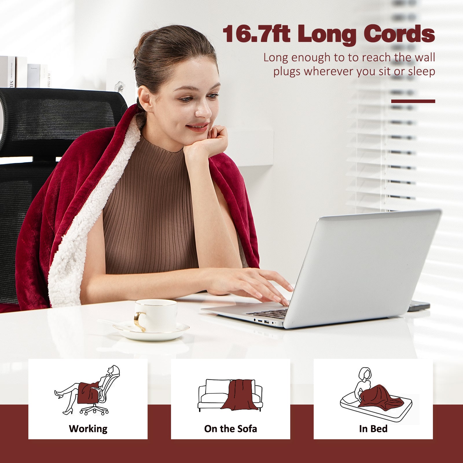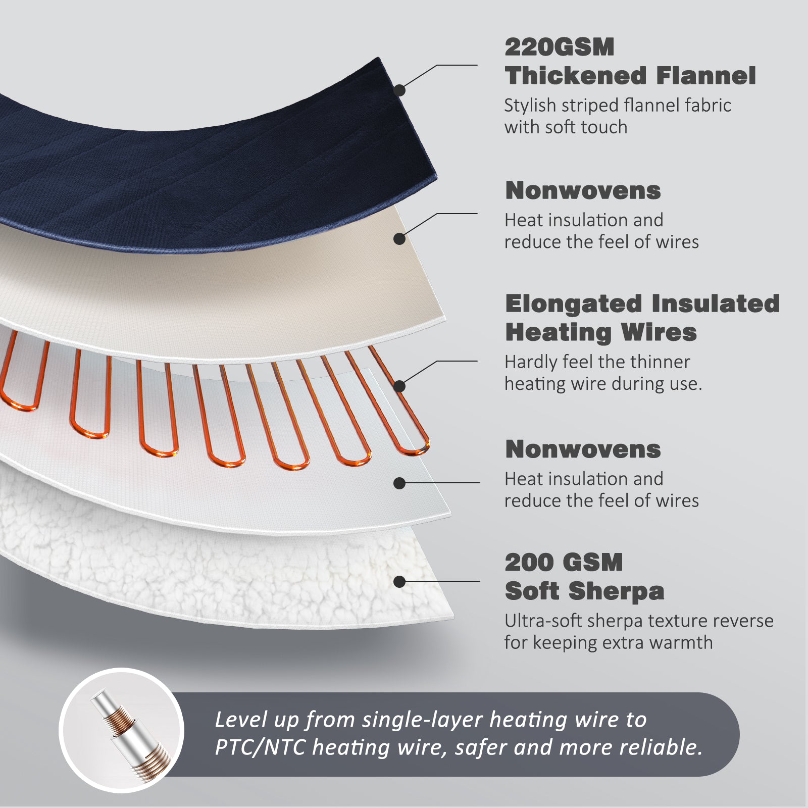 Our blanket isn't merely about warmth; it's about indulging you with conveniences that simplify life. With five adjustable heating levels, you have the power to curate your ideal cocoon of comfort. An automatic timer shutdown, set from 1 to 10 hours, ensures safety and energy efficiency, granting you peace of mind as you relax. The integrated overheating protection serves as your guardian, while the extended power cord provides the freedom to use it wherever you wish.