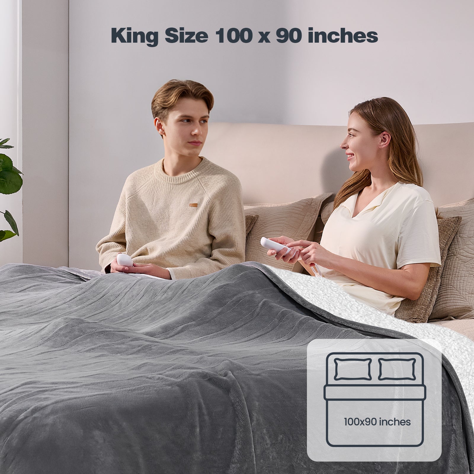 - Oversized Coverage — 90" × 100": Generous size for King beds or shared use.